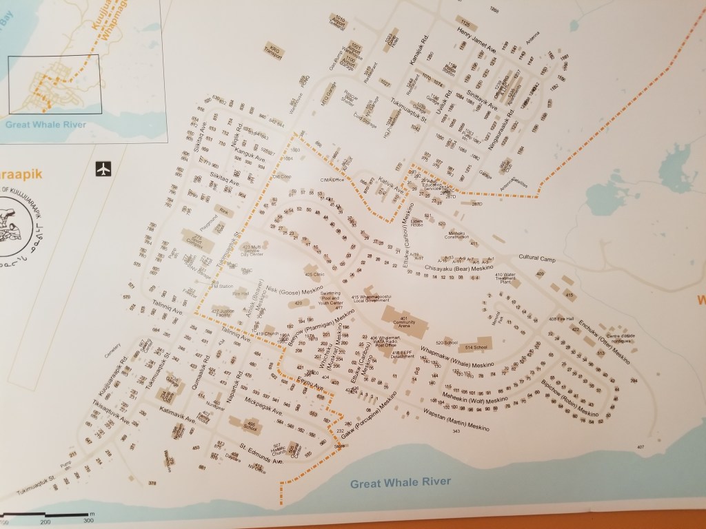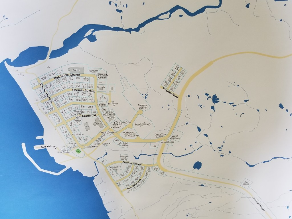 Kuujjuaq is different from any other Nunavik towns. It is said to be the capital of Nunavik. It is titled this way due to it being the largest town in the region. For comparison, let me show you the maps of the three cities I went to this summer.