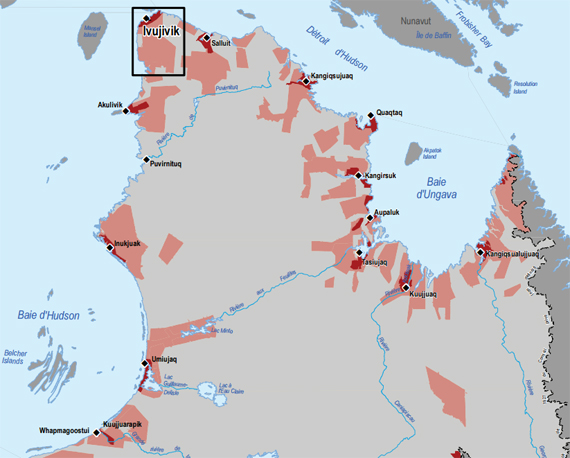 - Category II: Owned by the Quebec government, but the communities have hunting, fishing and trapping rights, represented by the pink on the map.